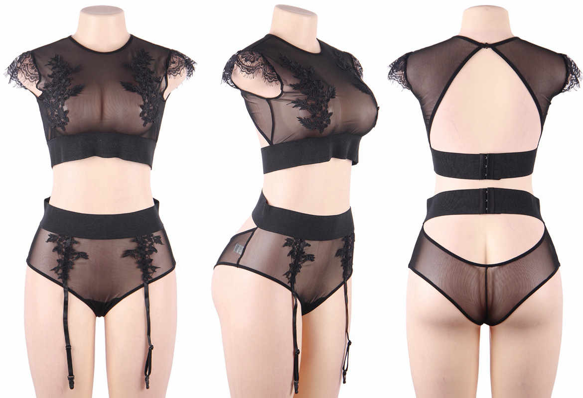 Plus Size Underwear Suit Mesh See-through Sexy Garter Adjustable White Sexy Sleepwear
